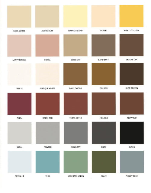Sunt populare culorile: negru, diverse tonuri de gri, caramiziul, verde, maro sau chiar alb (o culoare mai greu de obtinut).